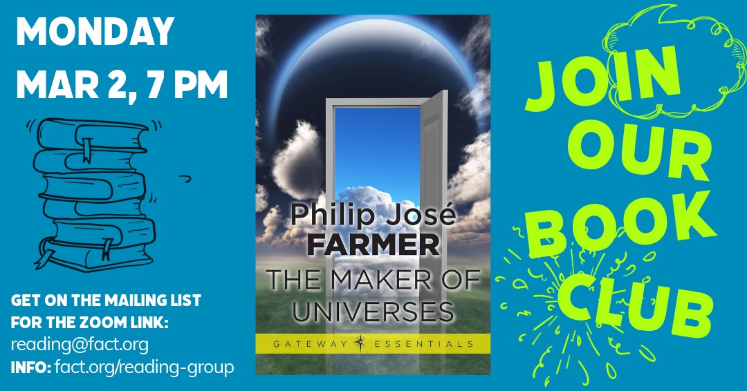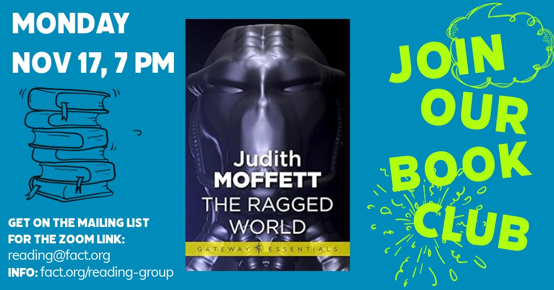OnlineWant to talk about a great read with other booklovers? The FACT SF/F Reading Group will meet on Monday, Nov 17, at 7 PM CST to discuss The Ragged World by Judith Moffett! The meeting will be held online via Zoom. To get the link (if not already on the mailing list), send an email to reading at fact.org